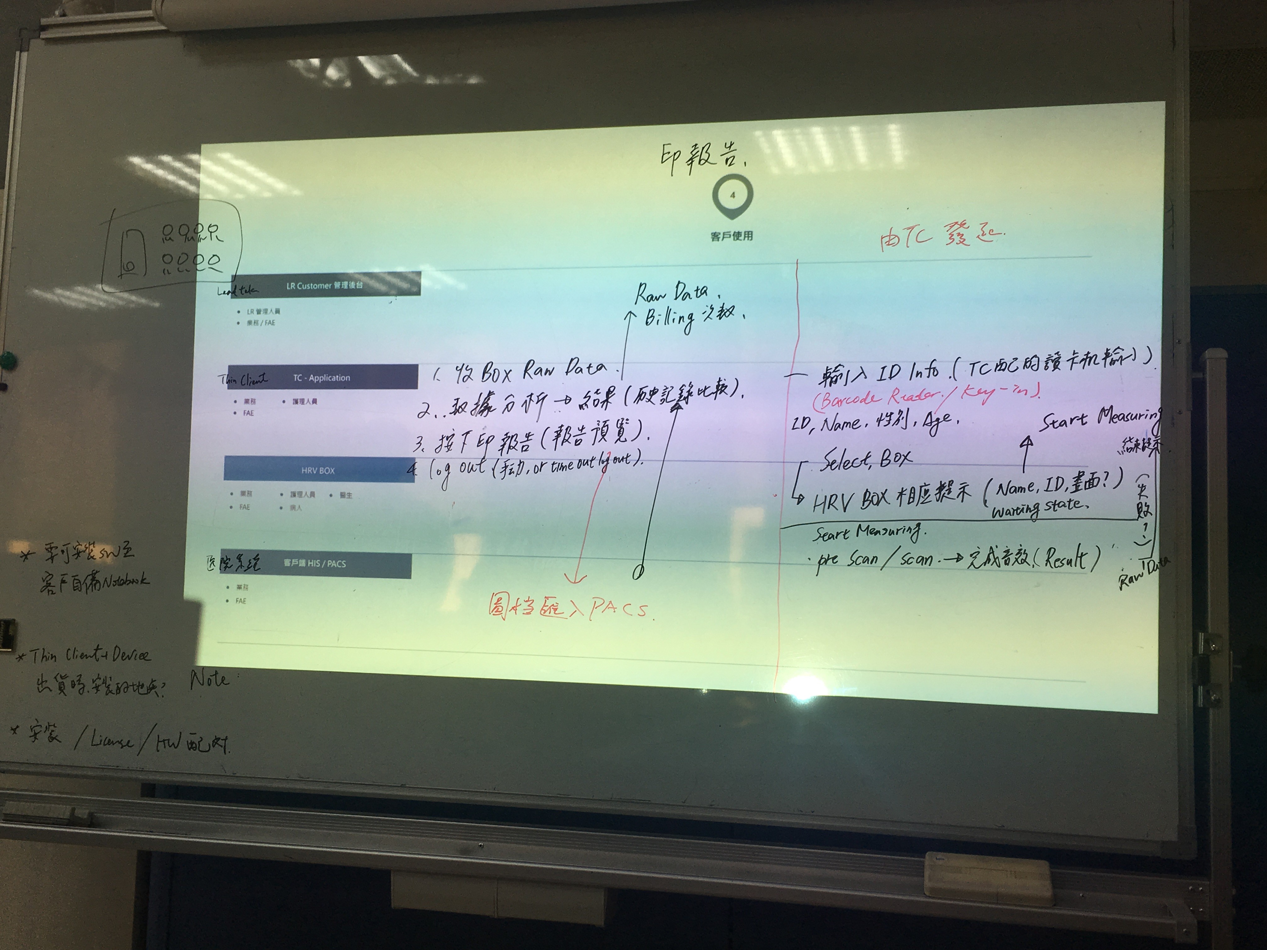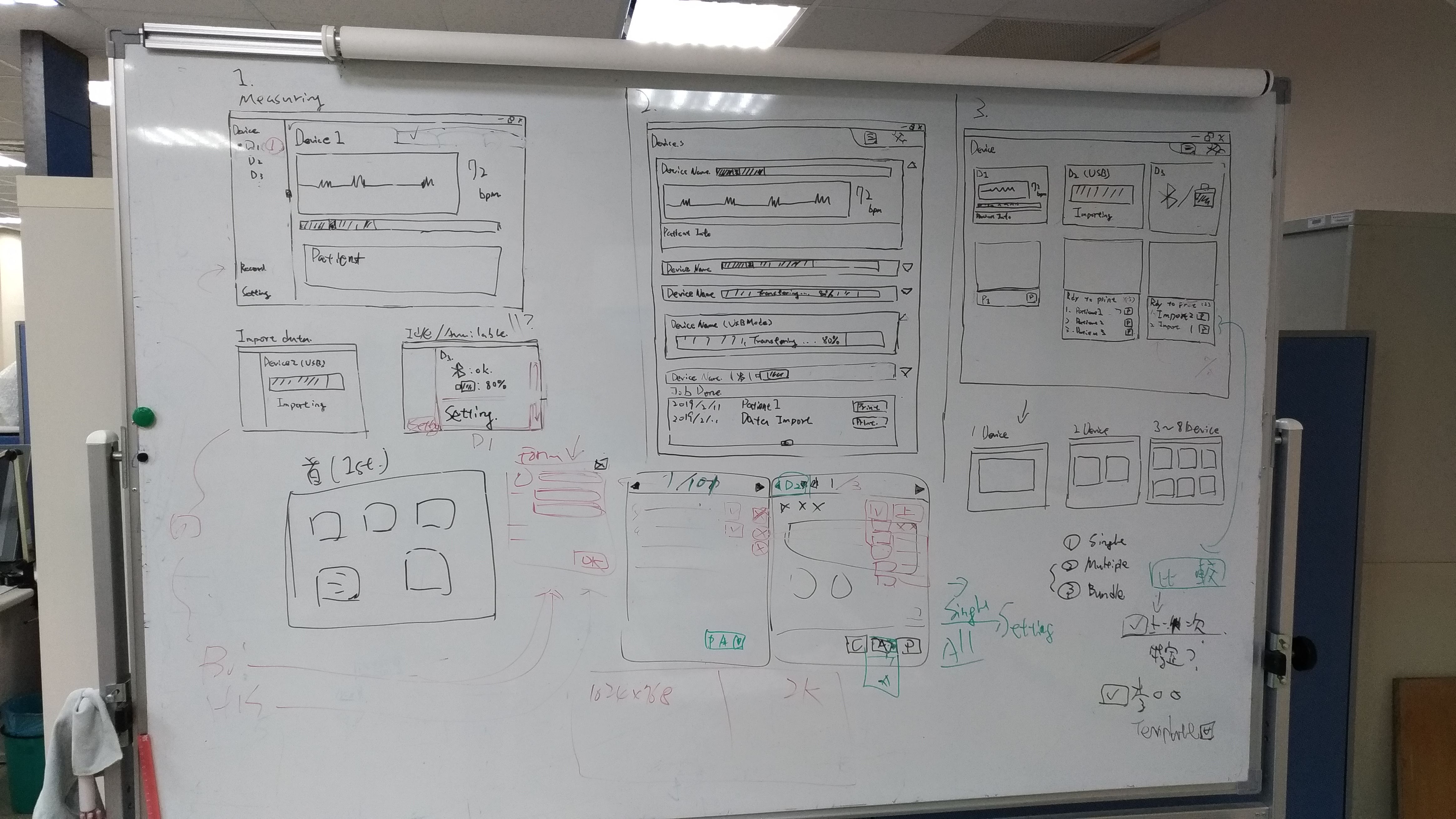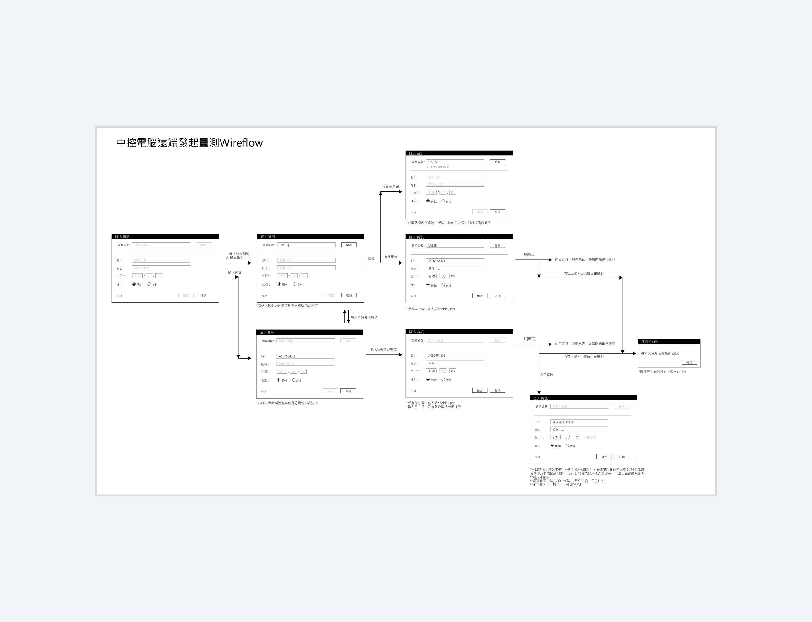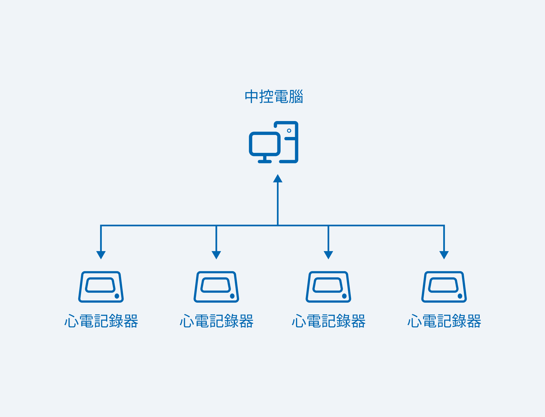 系統由中控電腦與數台可攜式記錄器組成,醫護人員可以依場合需求,選擇將中控電腦與記錄器連線使用,以即時回收與管理檢測紀錄;或是單獨使用記錄器,事後批次匯入紀錄至中控電腦皆可。